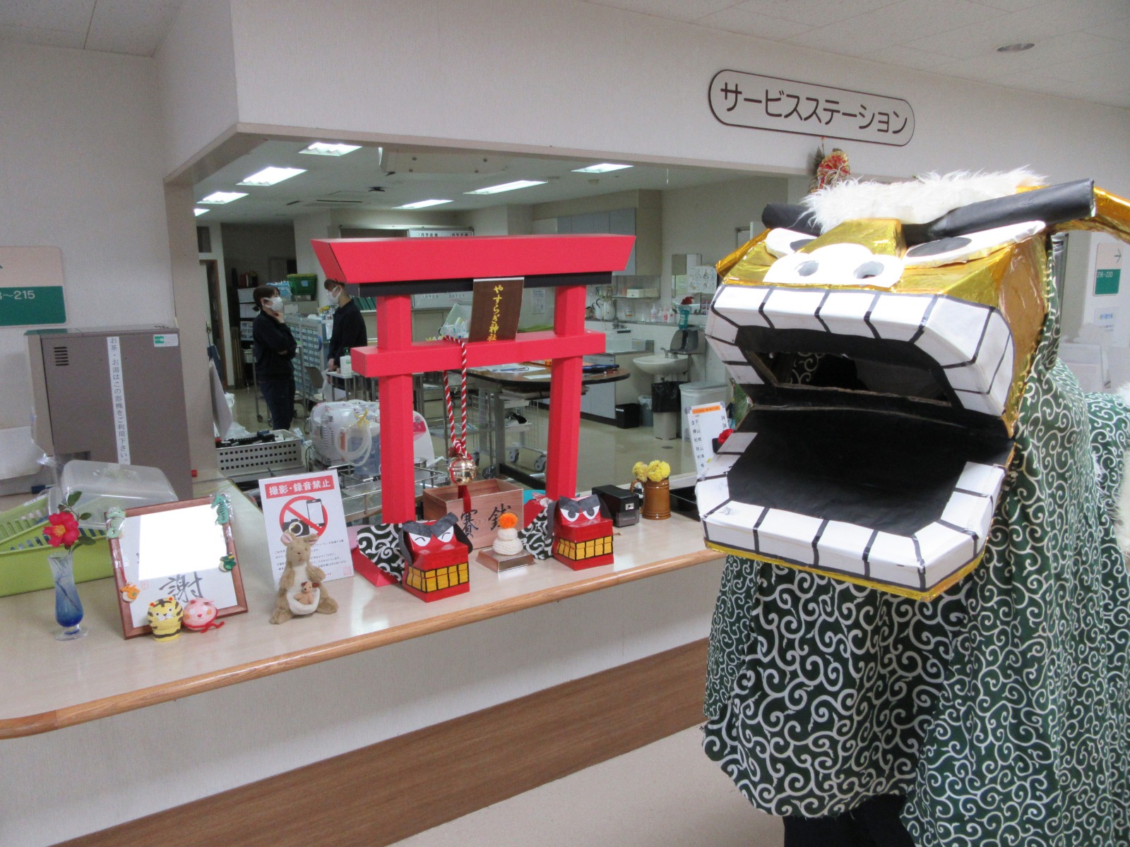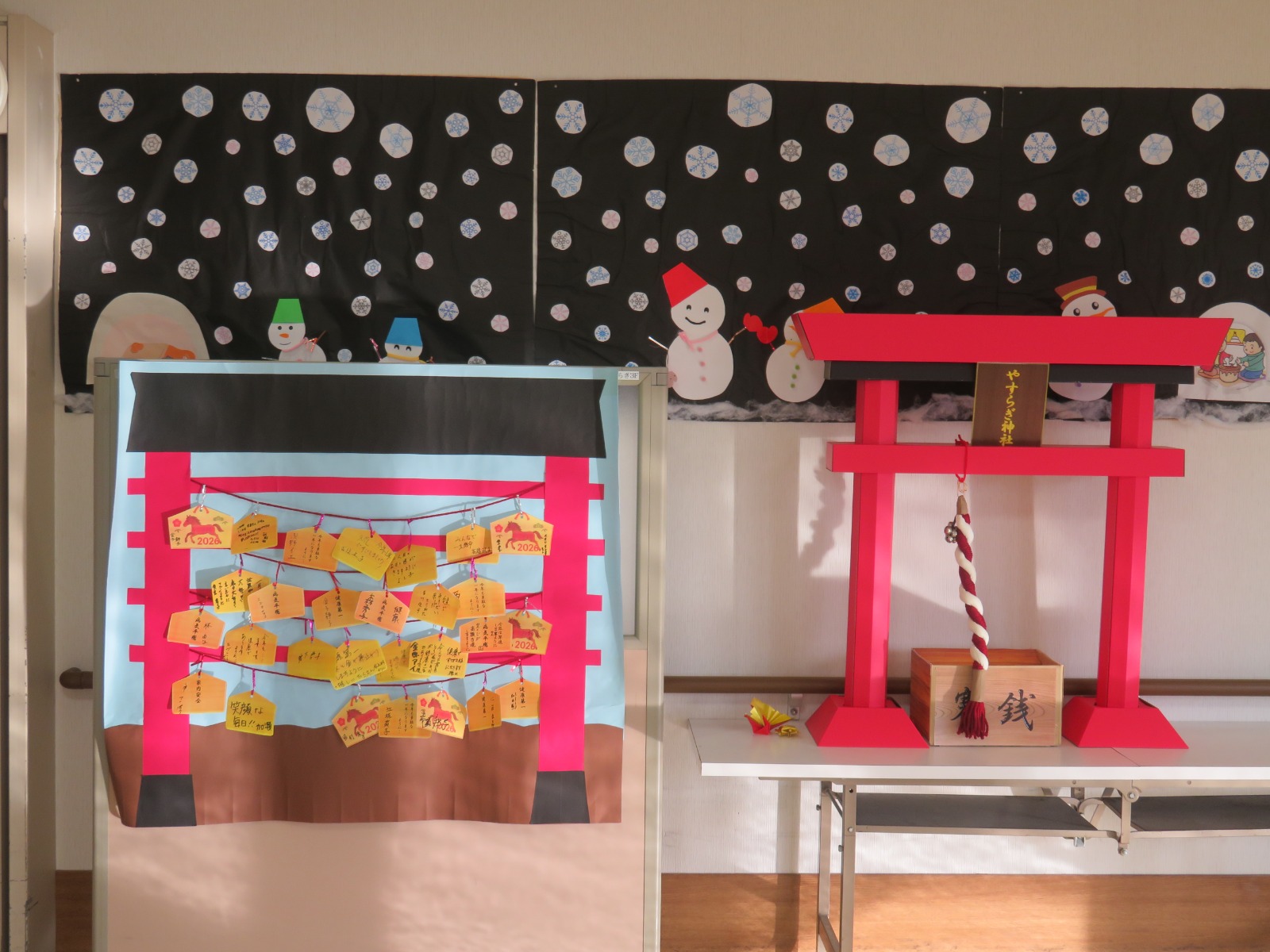 ということで、今年も新年会を開催させていただきました。各フロアにやすらぎ神社を建てて、よりお正月の雰囲気を味わえるように工夫致しました。また、絵馬も書いていただき、皆様さまざまな想いを込められ書かれていました。今年も皆様にとってハッピーな1年になりますように、職員一同願っております。